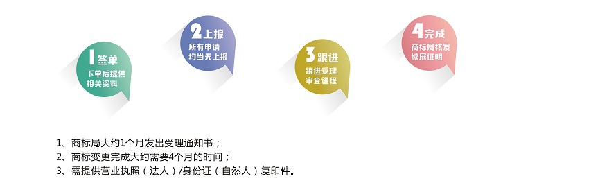 商標核準注冊后,商標注冊人的名義、地址或其他注冊事項發(fā)生變更的,應當向商標局申請辦理相應變更手續(xù)。變更商標注冊人名義或地址的,商標注冊人應將其全部注冊商標一并變更。商標變更可以是已經(jīng)獲準注冊的商標,也可以是在申請中的商標。
