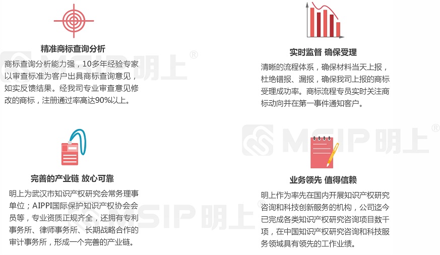 1、專業(yè)知識產(chǎn)權(quán)背景 明上利用自己專業(yè)化的知識產(chǎn)權(quán)背景,為企業(yè)知識產(chǎn)權(quán)領(lǐng)域業(yè)務提供專業(yè)解決、代理申報服務并完善申報工作中關(guān)于企業(yè)自主知識產(chǎn)權(quán)的專業(yè)問題。