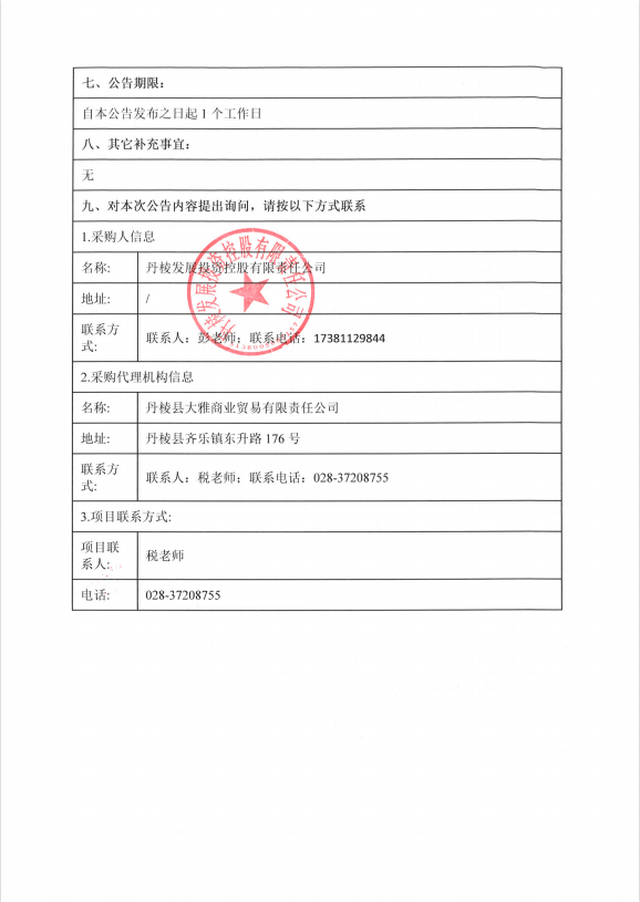【丹發(fā)展公司】丹棱發(fā)展投資控股有限責(zé)任公司供應(yīng)商目錄庫入庫代理機(jī)構(gòu)采購(gòu)項(xiàng)目競(jìng)爭(zhēng)性磋商成交公告