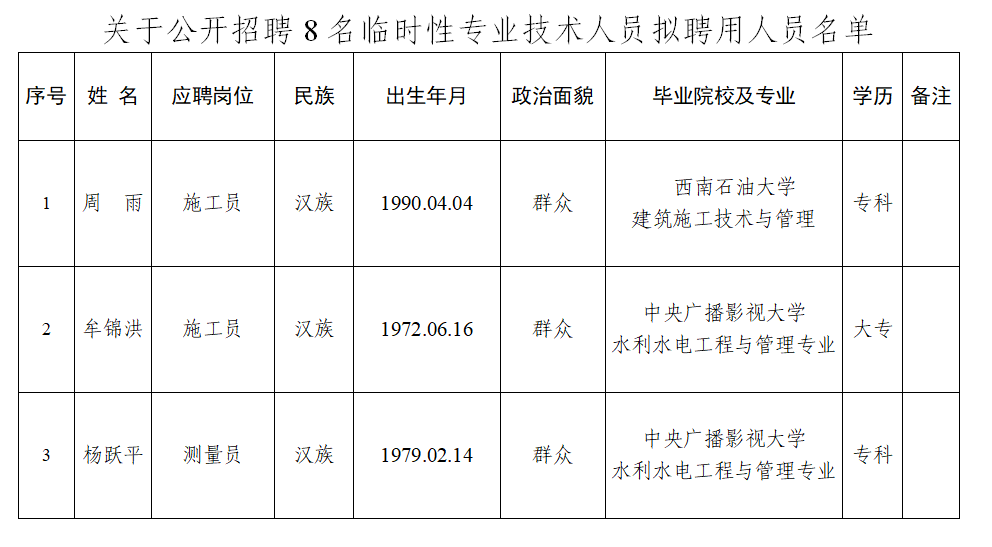 附件:關(guān)于公開(kāi)招聘8名臨時(shí)性專(zhuān)業(yè)技術(shù)人員擬聘用人員名單