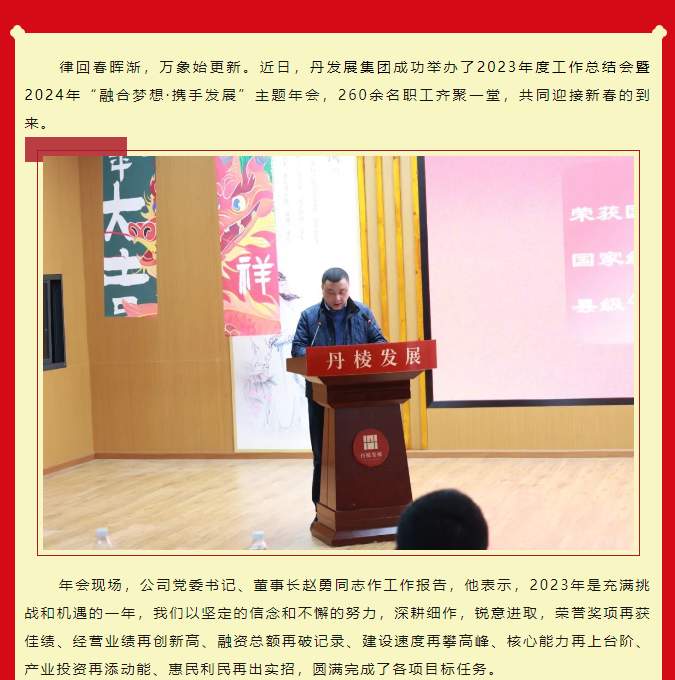 融合夢想·攜手發(fā)展︱丹發(fā)展集團舉辦2023年度工作總結會暨2024主題年會